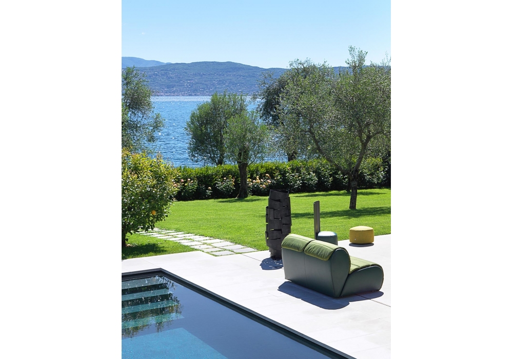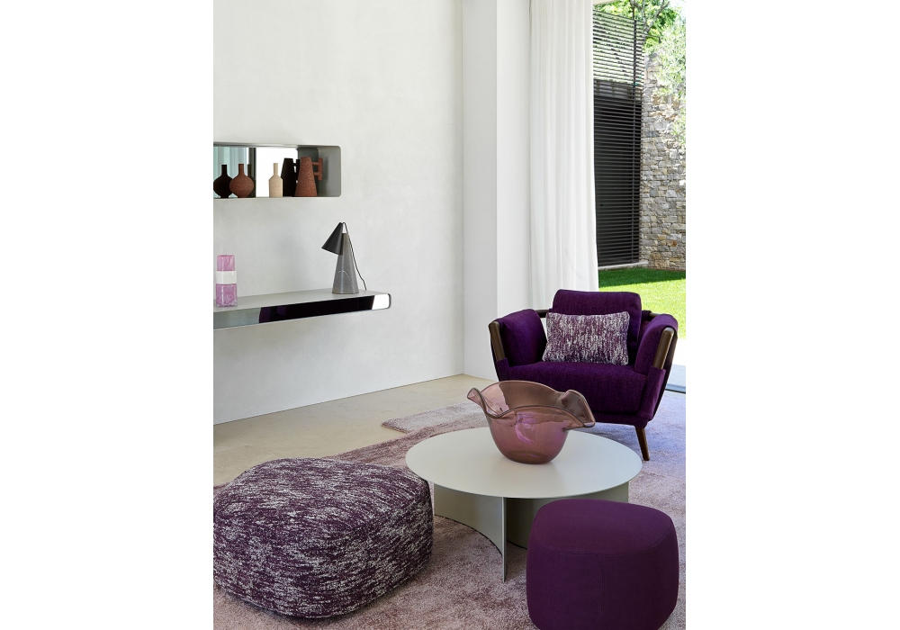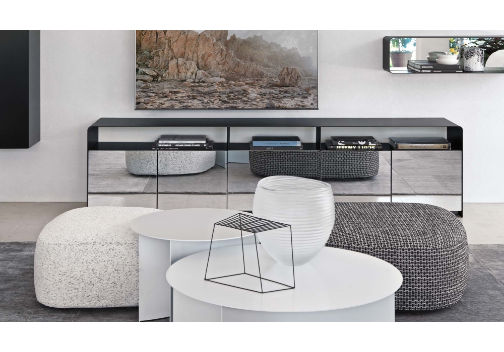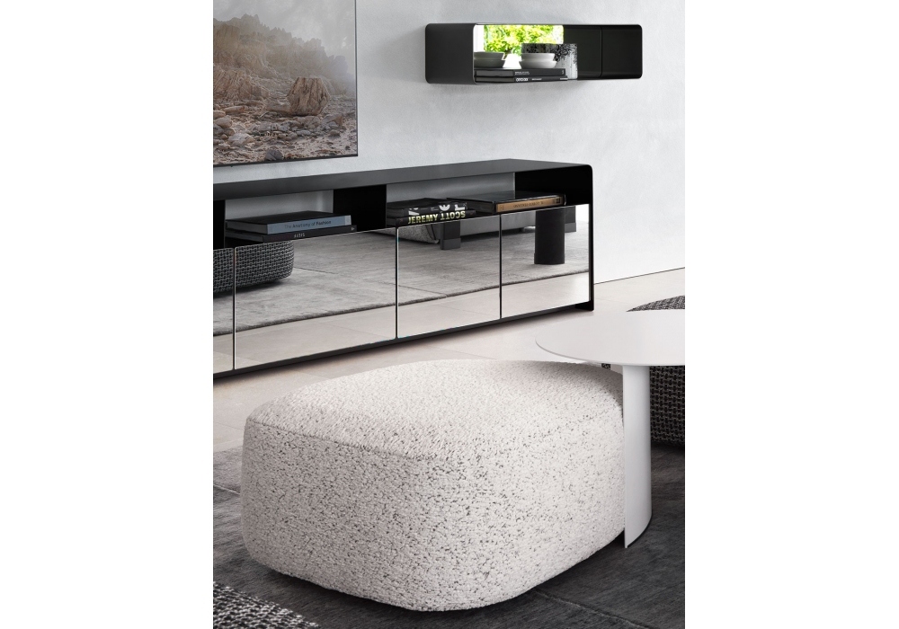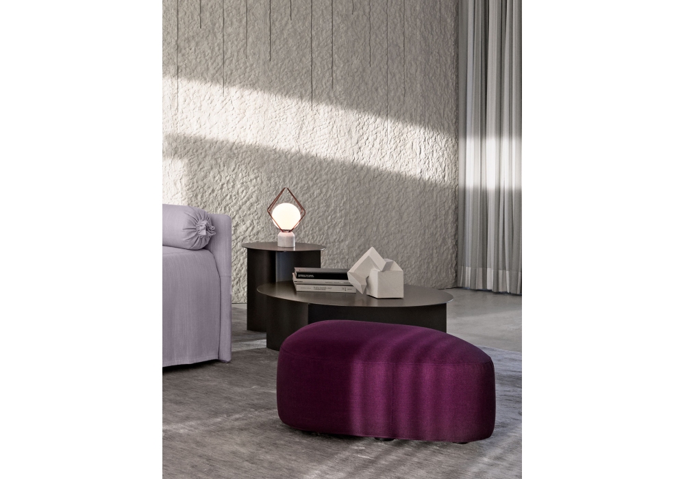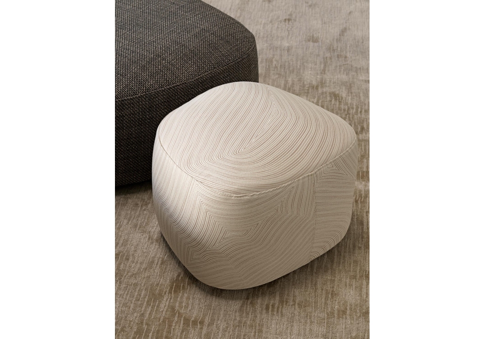 Pierre diseñado por Studio Contromano para Flou es una colección de pufs tapizados de formas irregulares. Revestimiento desenfundable en tejido o piel con costuras a la vista que exaltan la línea redonda.