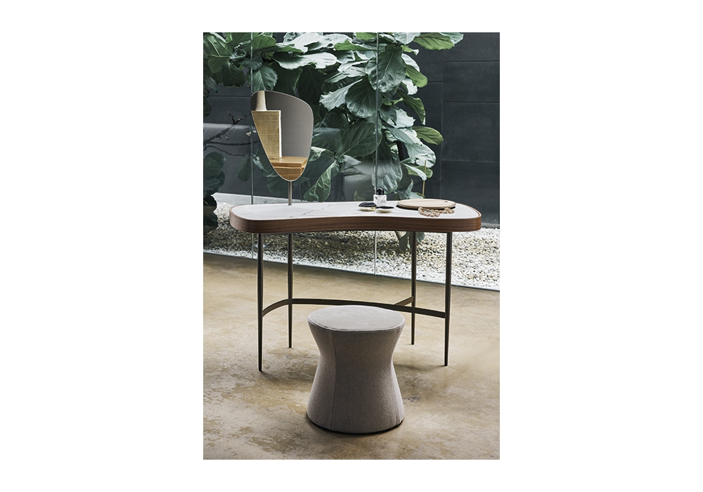 Clesidra diseñado por Mauro Lipparini para Bonaldo es un puf con estructura interna de madera con puntas de plástico. El acolchado del asiento es de espuma de poliuretano moldeada en varias densidades, el revestimiento interior es de pana combinada con fibra de poliéster. La tapicería está disponible en diferentes tejidos y colores, con la parte superior en piel.