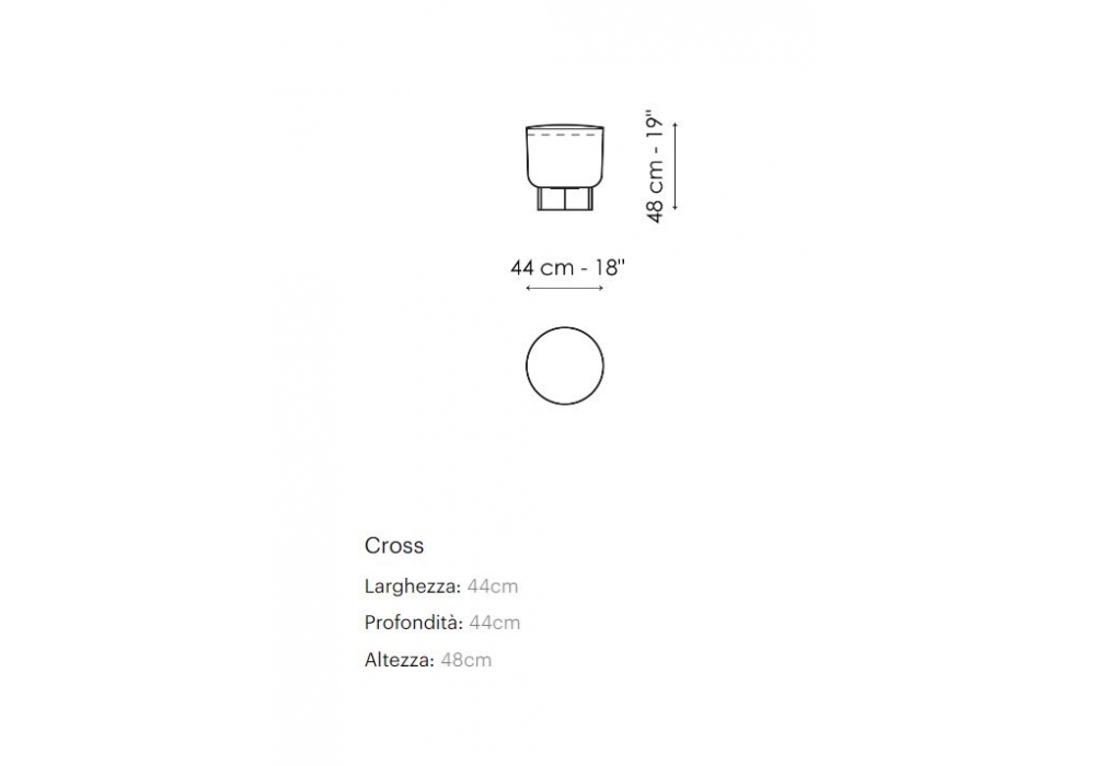 Cross diseñado por Alain Gilles para Bonaldo es un puf con estructura interna en madera, acolchado en poliestireno expandido y revestimiento interno en terciopelo. La funda es desenfundable y está disponible en diferentes tejidos y colores. La base es de madera contrachapada dispuesta en cruz, en varios acabados.