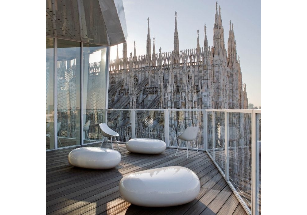 Koishi diseñado por Naoto Fukasawa para Driade es un puf con estructura en fibra de vidrio pintada. También es adecuado para uso en exteriores. Disponible en diferentes acabados.