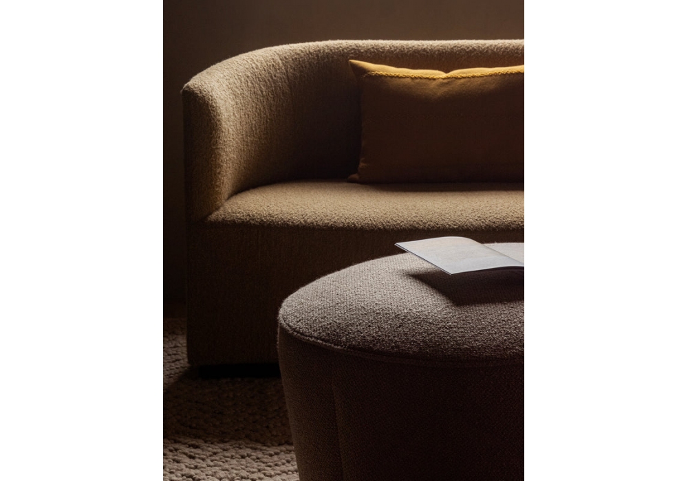 Cairn diseñado por Nick Ross para Audo Copenhagen es un puf acolchado con revestimiento de tela. Disponible en diferentes acabados y medidas.
