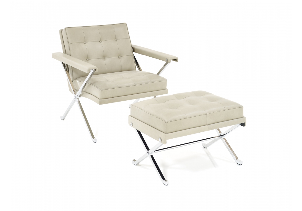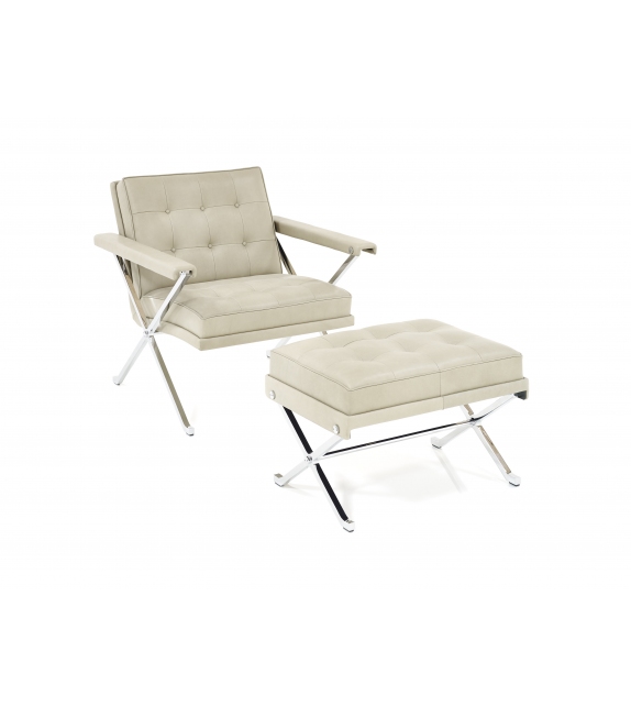 Constanze 3/4 diseñado por Johannes Spalt para Wittmann es un puf con estructura de metal y madera, tapizado en tejido, terciopelo o piel. Disponible en diferentes acabados.