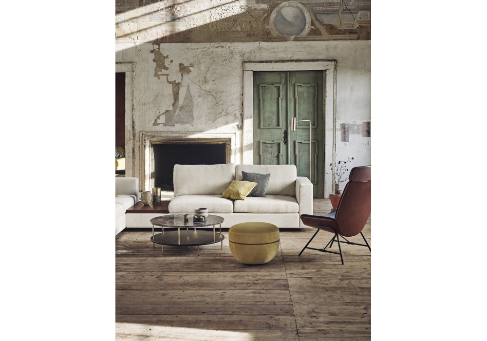 Miles diseñado por Sebastian Herkner para Wittmann es un puf con estructura de madera, con tapizado en tejido, terciopelo o piel. Disponible en diferentes acabados.