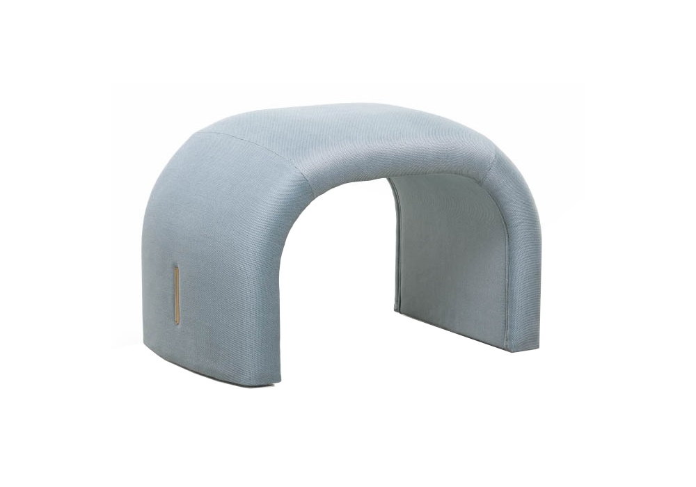 Eclipse diseñado por Andrea Bonini para Turri es un puff con estructura en madera maciza y contrachapado acolchado con espuma de poliuretano con revestimiento fijo en piel o tejido con inserciones de metal en acabado oro claro