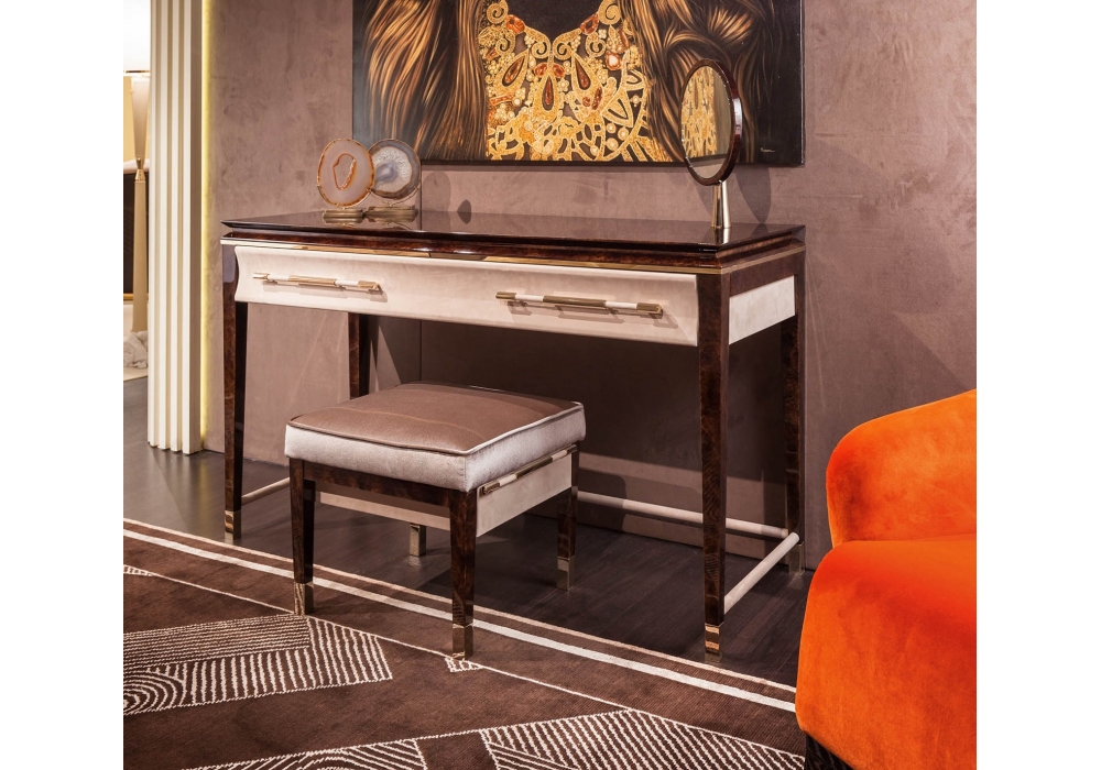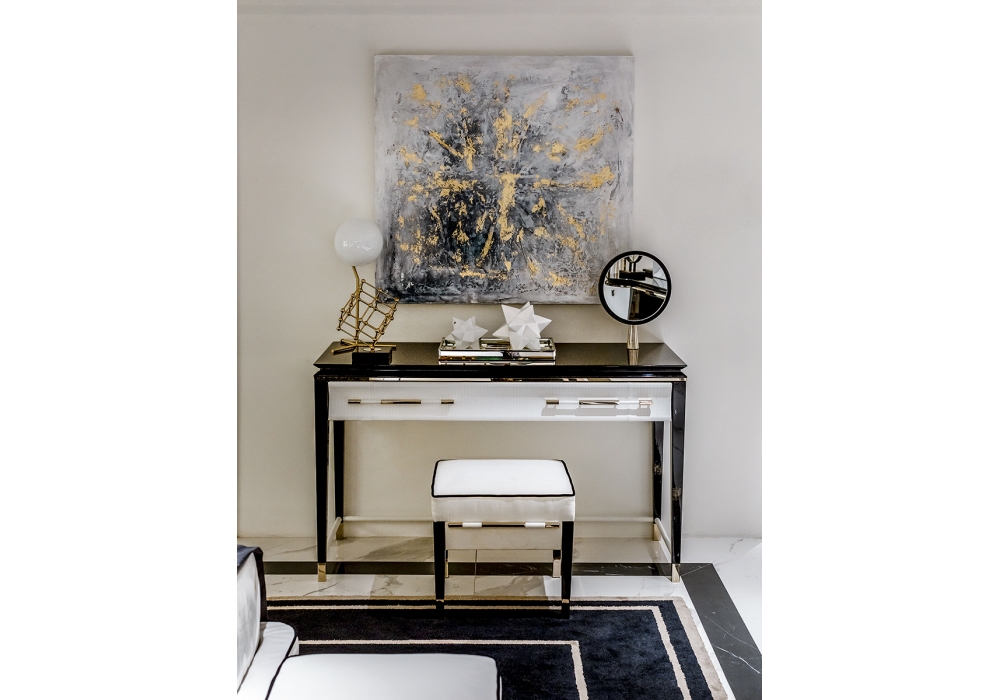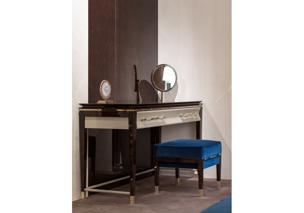 Noir diseñado por Andrea Bonini para Turri es un puff con madera contrachapada y patas de madera maciza en acabado poliéster brillante decorado a mano. Cojines en espuma de poliuretano revestidos en diferentes tejidos o pieles. Partes metálicas en acabado oro claro o bronce.