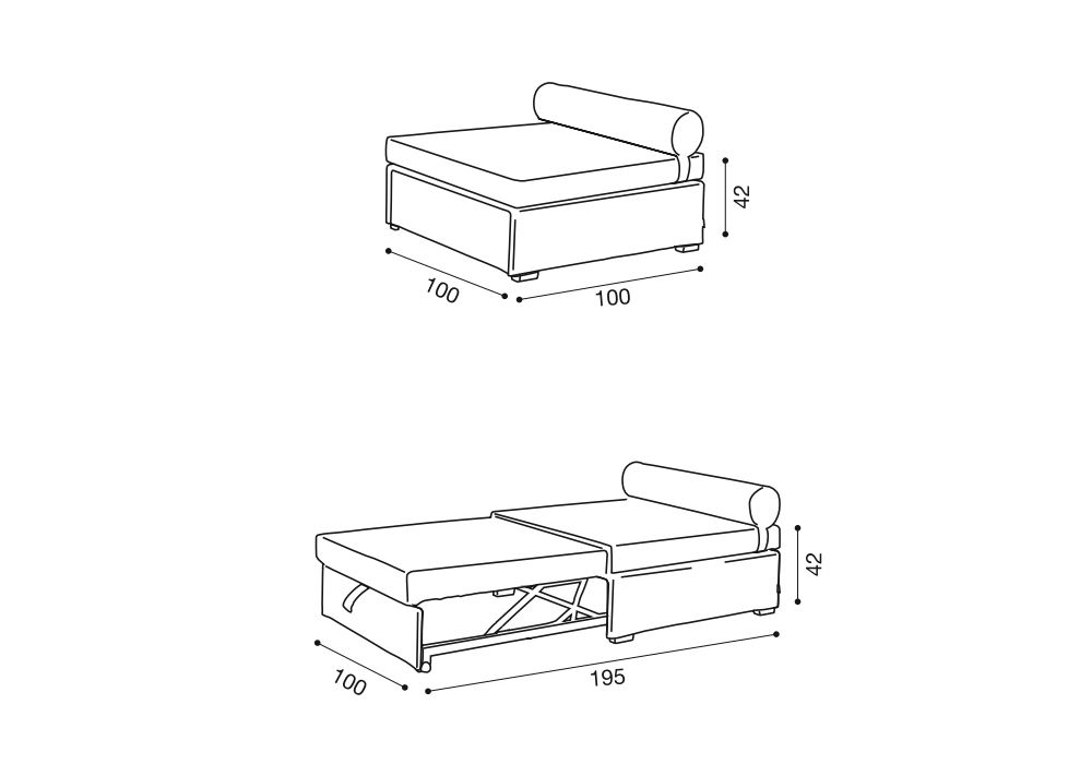 Modem diseñado y producido por Twils es un puf cama que se transforma en cama con unos simples gestos. La tapicería está disponible en varios tejidos y colores. Es posible combinar un cojín rollò.