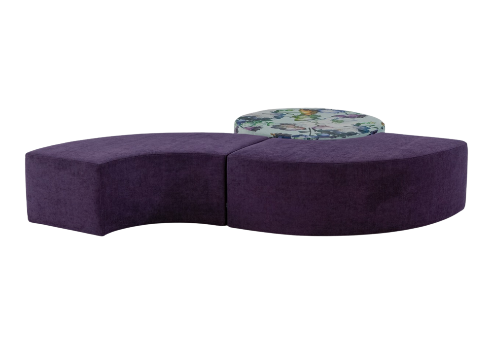 Nesos diseñado y producido por Twils es un puf acolchado con tapizado disponible en varios tejidos y colores. Bajo pedido, se puede combinar con otros pufs redondos para crear cómodas composiciones de asiento.