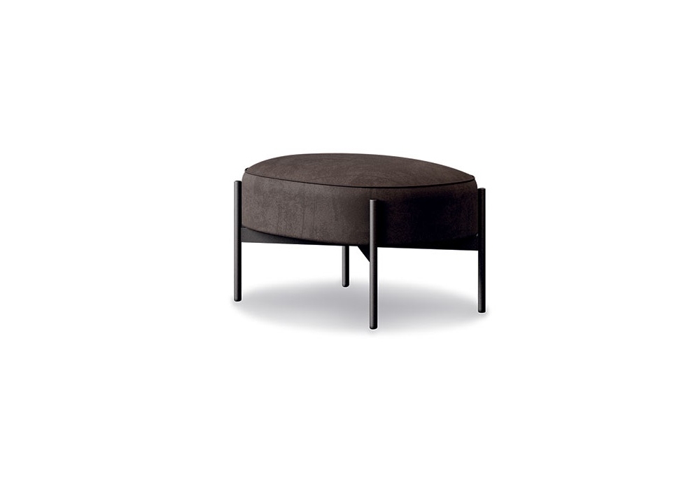 Virgin diseñado por Mauro Lipparini para MisuraEmme es un puf realizado con una estructura interna de madera recubierta de goma confort y una base de metal pintado de negro. Tapicería en tela o piel.