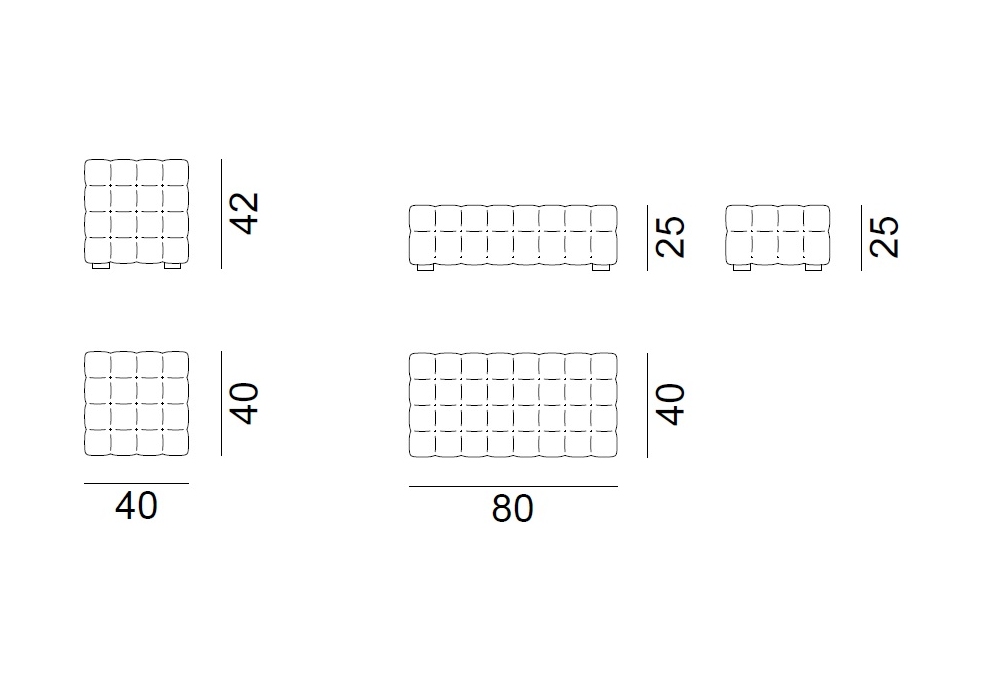| Dimensiones | 40 x 40 x H 42 cm; 80 x 40 x H 25 cm. |