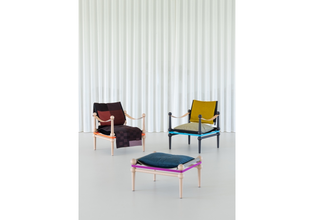 Twain diseñada por Konstantin Grcic para Magis es una otomana con estructura de haya maciza y asiento de tela. Disponible en diferentes acabados.