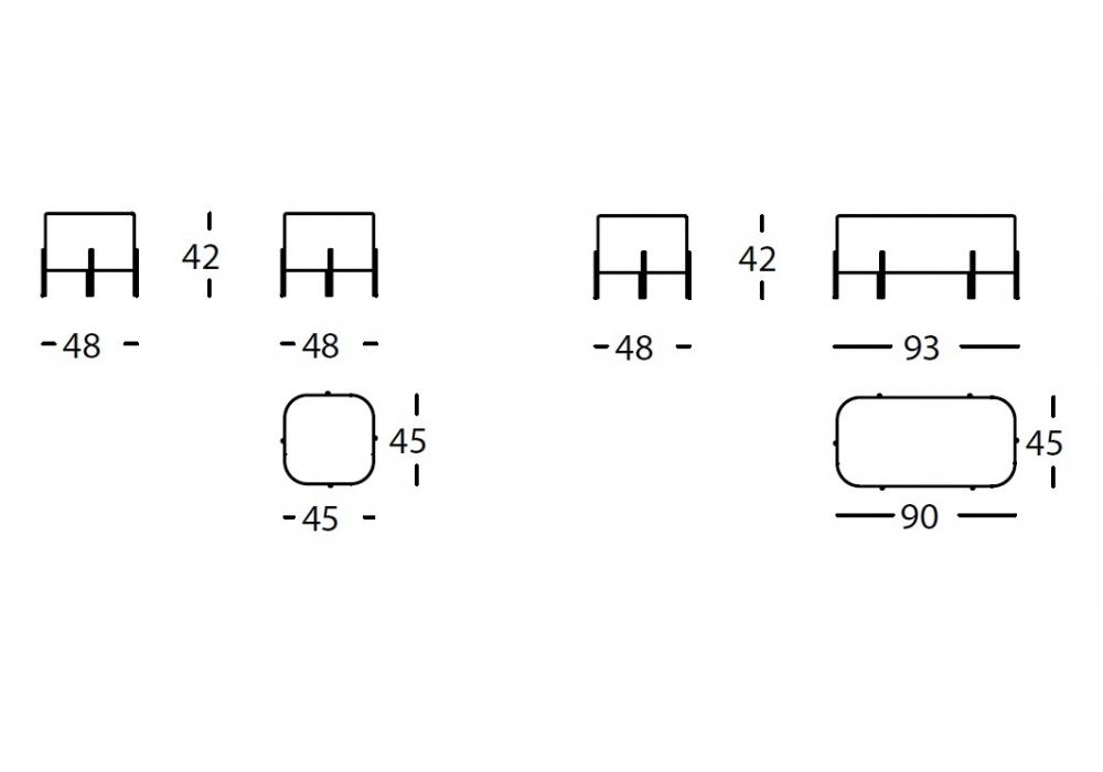 | Dimensiones | • 48 x 48 x H 42 cm; • 93 x 48 x H 42 cm |