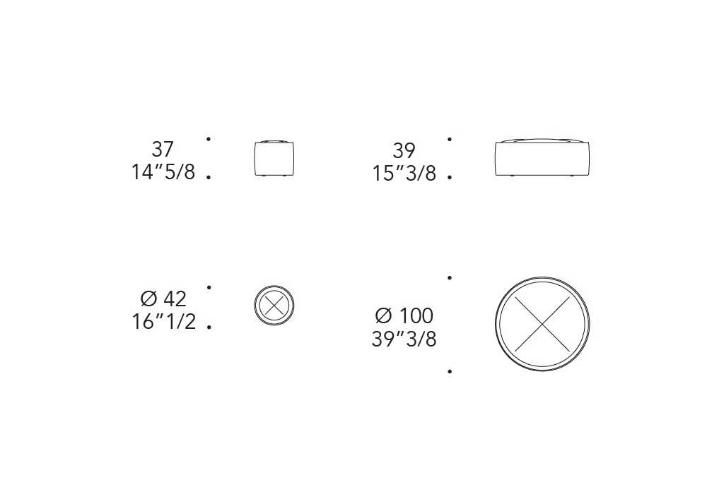 | Dimensiones | Ø 42 x H 37 cm; Ø 100 x H 39 cm. |