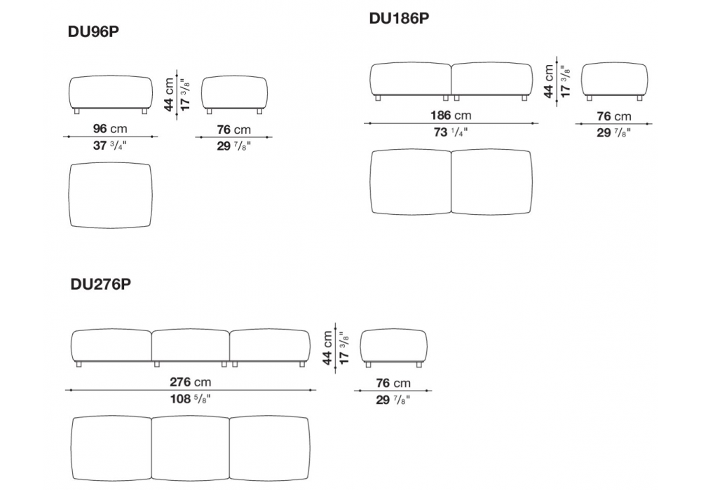 | Dimensiones | 96 x 76 x H 44 cm; 186 x 76 x 44 cm; 276 x 76 x H 44 cm. |