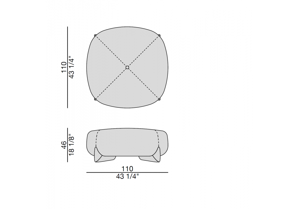 Softbay diseñado por Giuseppe Viganò para Porada es un puff con estructura de nogal canaletta macizo o fresno y tapizado desenfundable en diferentes tejidos. Cuenta con un botón central donde convergen las costuras.