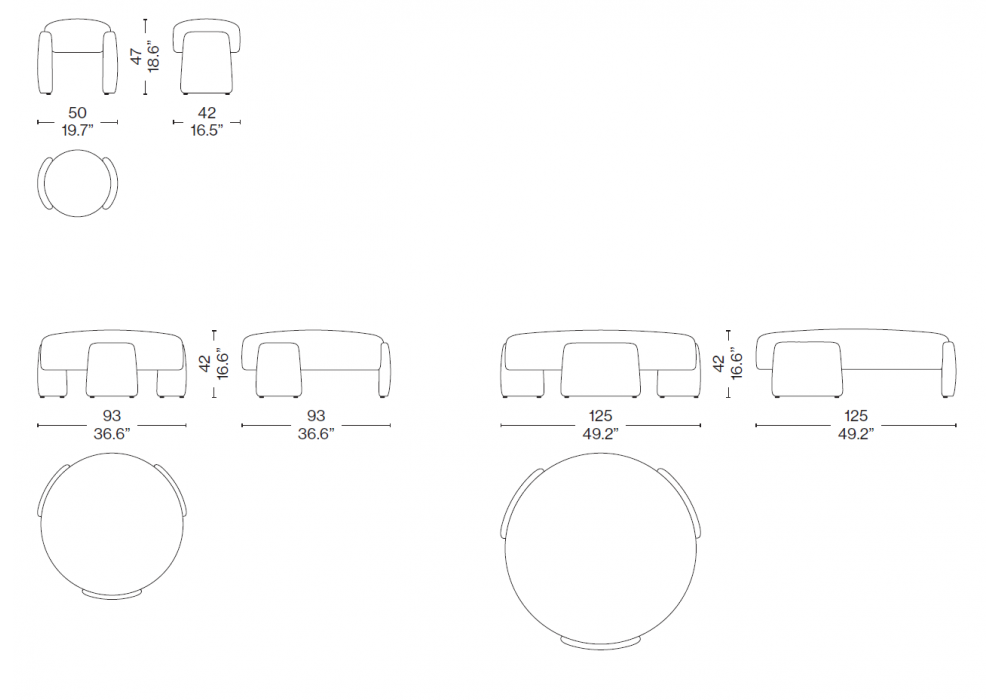 | Dimensiones | 50 x 42 x H 47.5 cm; 93 x 93 x H 42.5 cm; 125 x 125 x H 42.5 cm. |