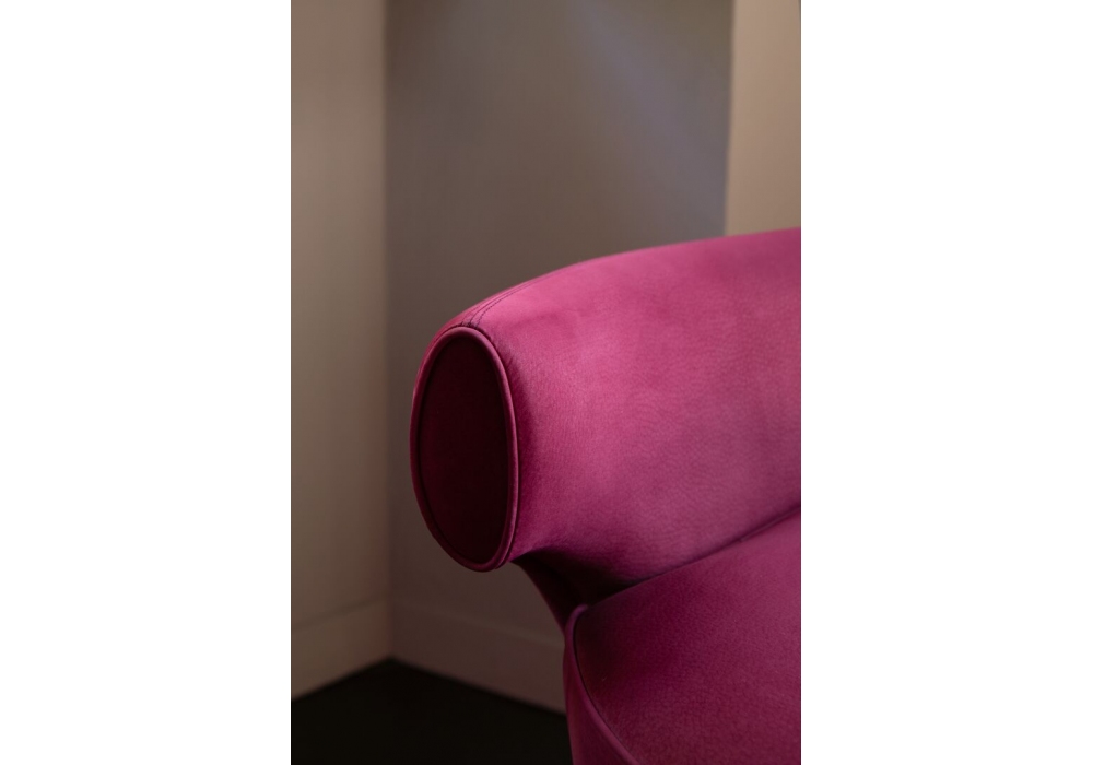 Inga diseñado por Roberto Lazzeroni para Baxter es un puf con estructura, asiento, patas y respaldo en contrachapado de abedul y álamo. Acolchado de espuma de poliuretano de densidad diferenciada. Revestimiento solo en pieles suaves.