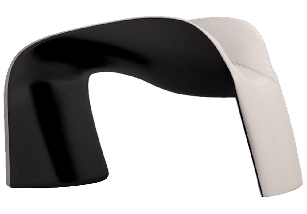 Eva is a pouf designed by Carlo Colombo for Giorgetti. Armchair with the structure in compact rigid polyurethane. External part shiny lacquered available in seven colours (white, anthracite gray, dove-gray, tobacco, hazel, coloniale, milky) and internal part in fabric or leather. The upholstery in fabric or leather is not removable.
