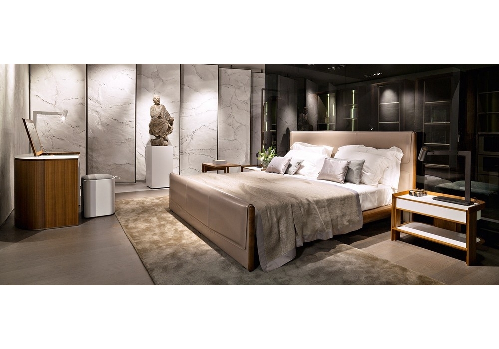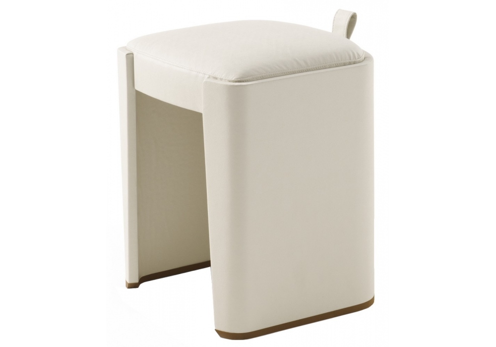 Venus is a stool designed by Roberto Lazzeroni for Giorgetti. tool with the structure in curved plywood and the seat in flexible multi-density polyurethane, covered with fibre. The feet are painted in a bronze colour with natural effect. The handle and the external upholstery are in leather, while the cushion can be in fabric or leather. The upholstery is not removable.