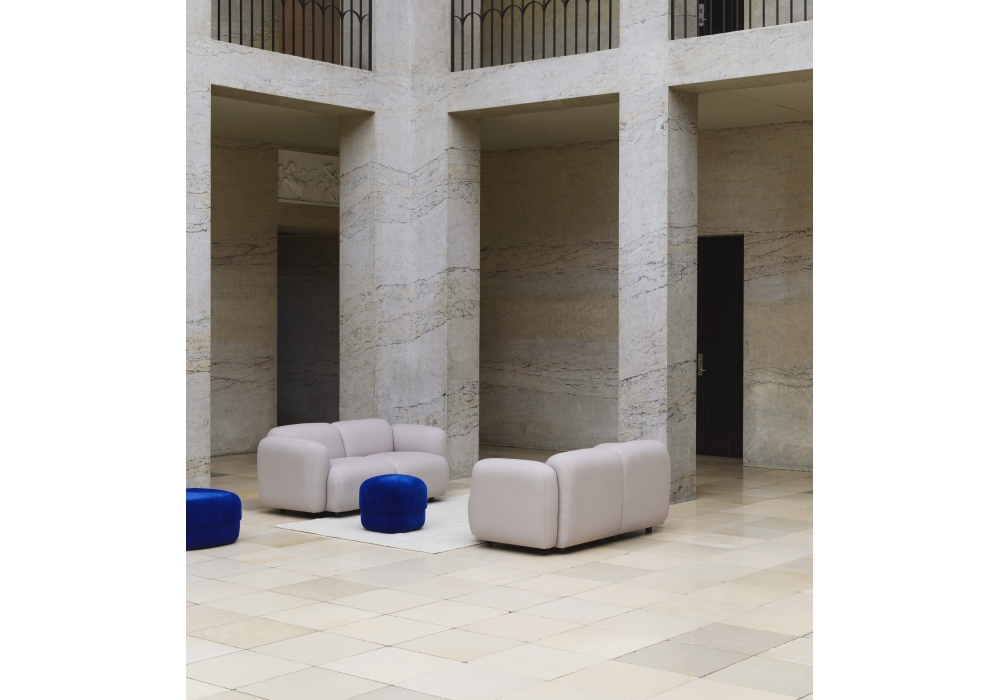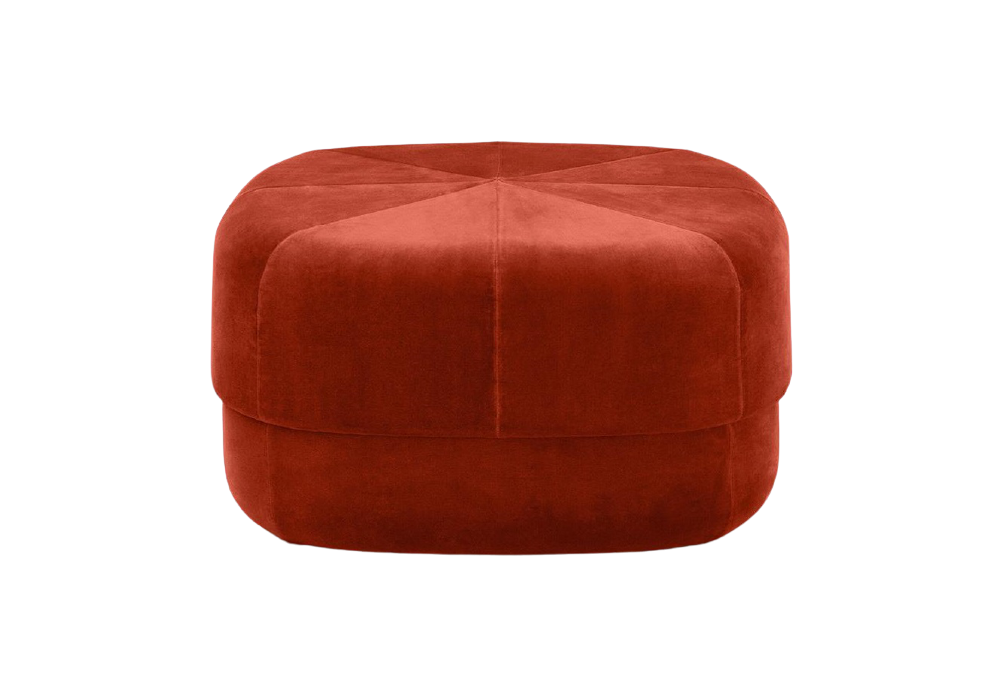Circus Pouf, diseñado por Simon Legald para Normann Copenhagen es un puf, estructurado por la combinación de espuma y madera, revestido en diferentes acabados de terciopelo.