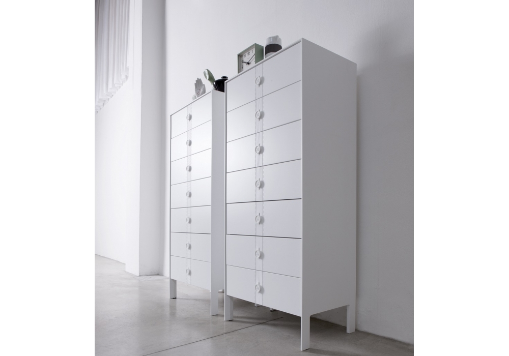 Another Day diseñada por Silvano Pierdonà para Capodopera es una cómoda alta realizada a partir de elementos unidos a 45° y ensamblados manualmente en acabado lacado mate. La apertura se realiza mediante push-pull o mediante pulsadores 3D.