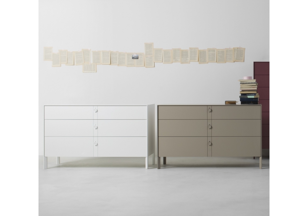 Another Day diseñada por Silvano Pierdonà para Capodopera es una cajonera realizada a partir de elementos unidos a 45° y ensamblados manualmente en acabado lacado mate. La apertura se realiza mediante push-pull o mediante pulsadores 3D.