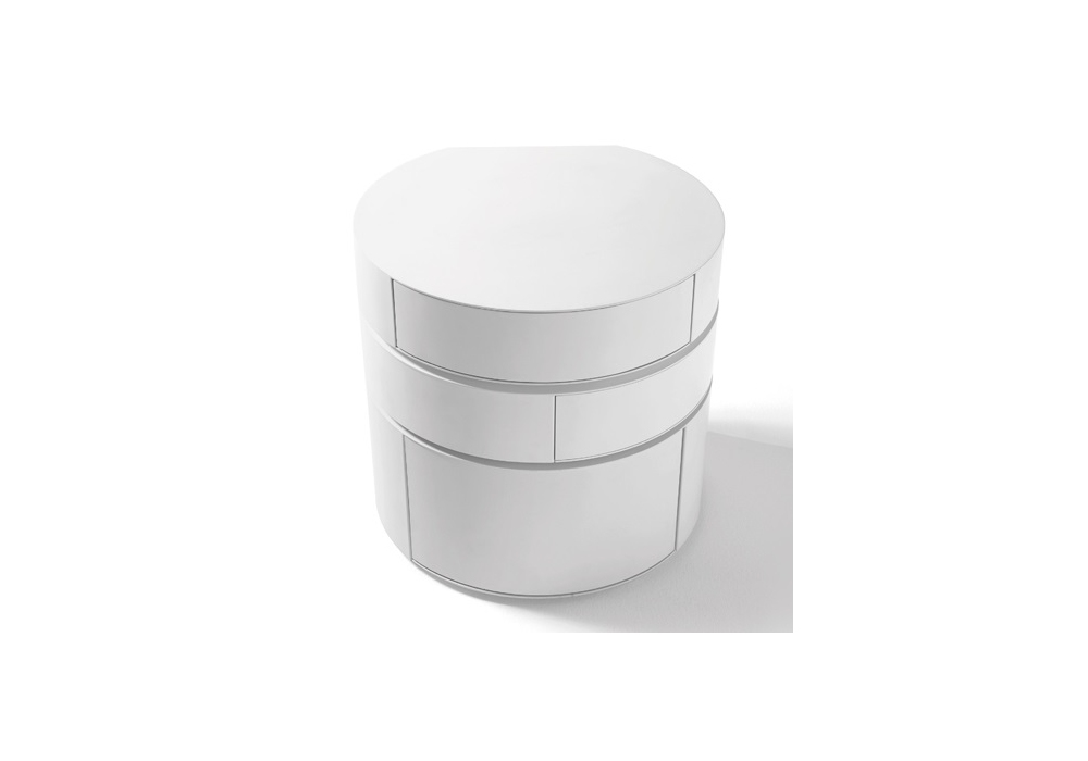 Bon.Bon diseñado por Lapo Ciatti para Opinion Ciatti es un contenedor con o sin base realizado con puerta o cajón con apertura push and pull, en metal lacado blanco, apilable y combinable en un patrón libre.