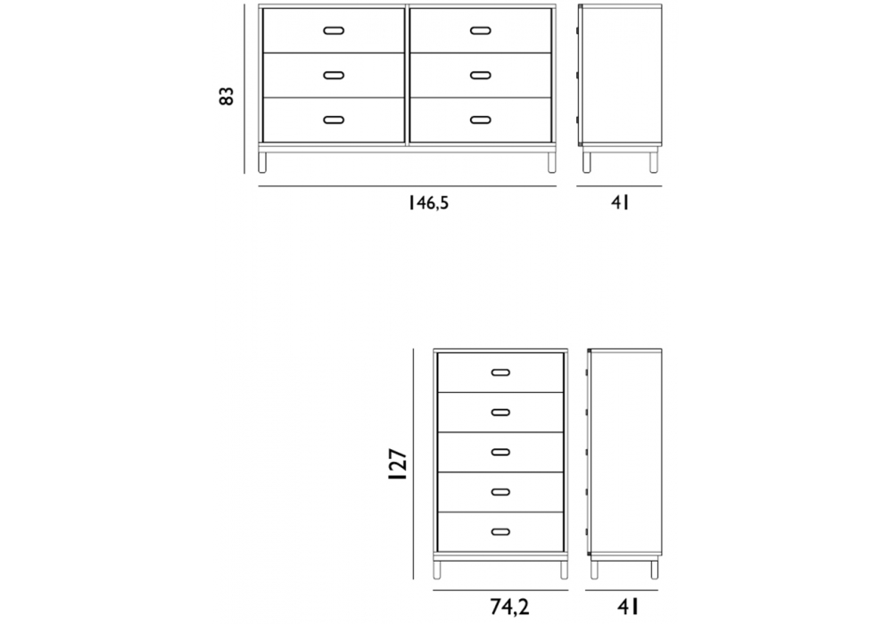 | Dimensiones | 146,5 x 41 x H 83 cm; 74,2 x 41 x H 127 cm |