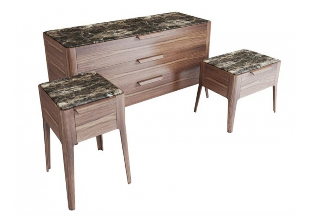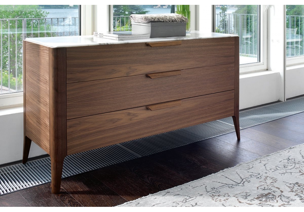 Ziggy Night 3 diseñada por Carlo Ballabio para Porada es una cajonera con estructura en nogal canaletta macizo disponible en diferentes acabados. Tapa en mármol, madera o cristal al ácido retrobarnizado.