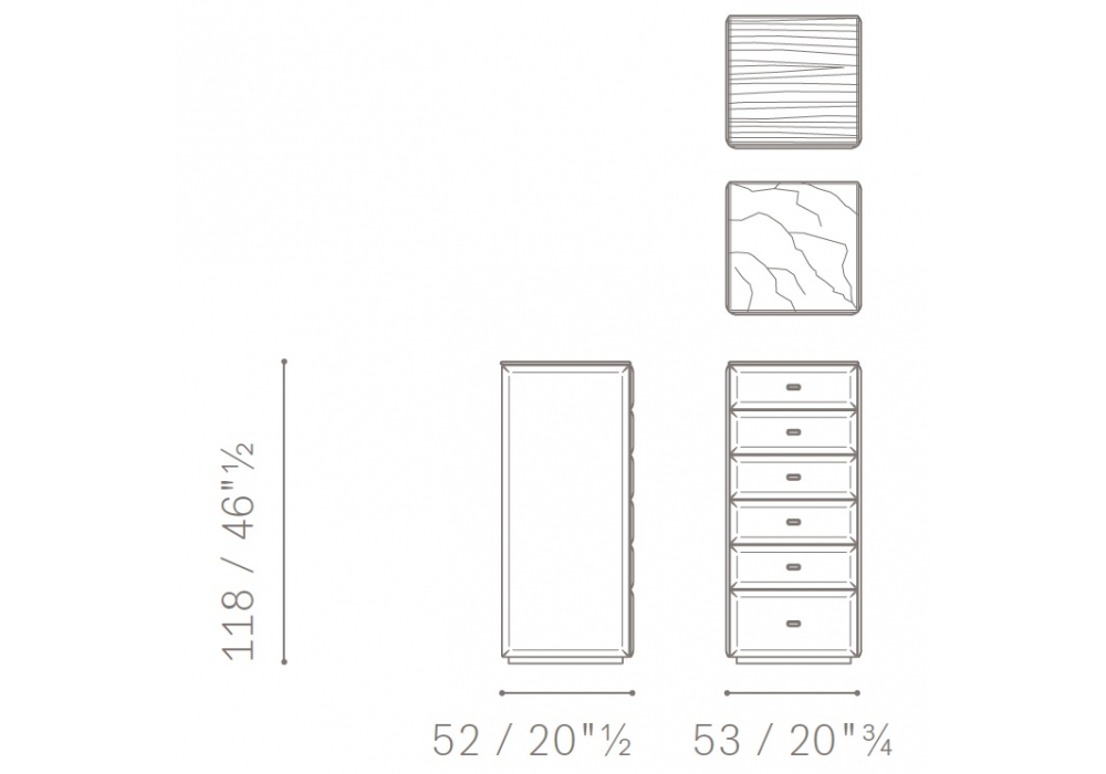 Moondance diseñada por Roberto Lazzeroni para Poltrona Frau es una cómoda alta con respaldo en madera de nogal Canaletto o piel y sobre en nogal Canaletto o mármol. A petición, son disponibles organizadores de compartimentos para los cajones.
