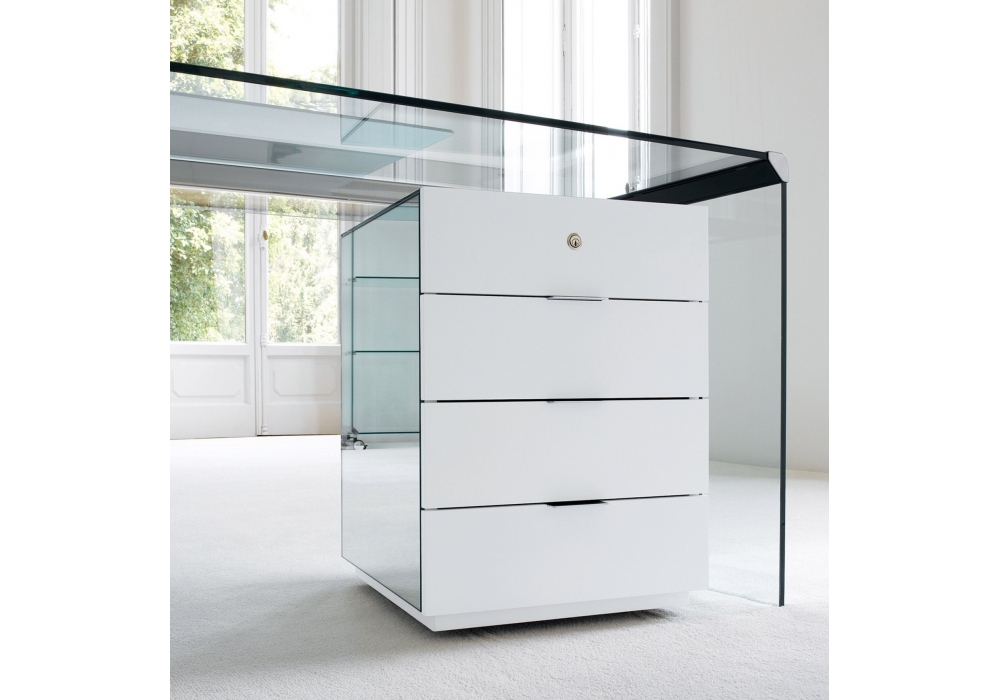 President Cassettiera diseñada por Gallotti&Radice es una cajonera sobre ruedas en madera recubiertas con espejo de 6mm de espesor o espejo ahumado "grigio Italia" de 5mm de espesor. Cajones en roble blanqueado, teñido wengué o teñido tabaco. Disponible también lacado negro, blanco o gris oscuro poro cerrado con interior en melamina gris. Bloquear solo en el primer cajón. Asas en latón cromado.