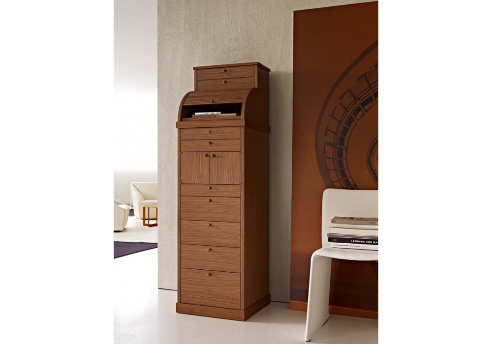 Carteggio diseñado por Aldo Rossi para Molteni&C es un secreter con cajones en madera, con balda extraíble protegida por una contraventana corredera. Disponible en 2 acabados.