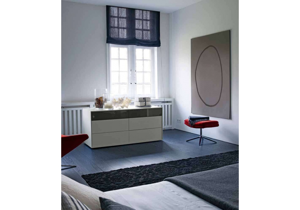 Dado diseñado por Studio Kairos para B&B Italia es una colección de cajoneras con estructura exterior barnizada satinada. El frente de los cajones está disponible en acabado mate o brillante, con los cajones superiores en el mismo acabado que los inferiores o en una selección de colores de la colección.