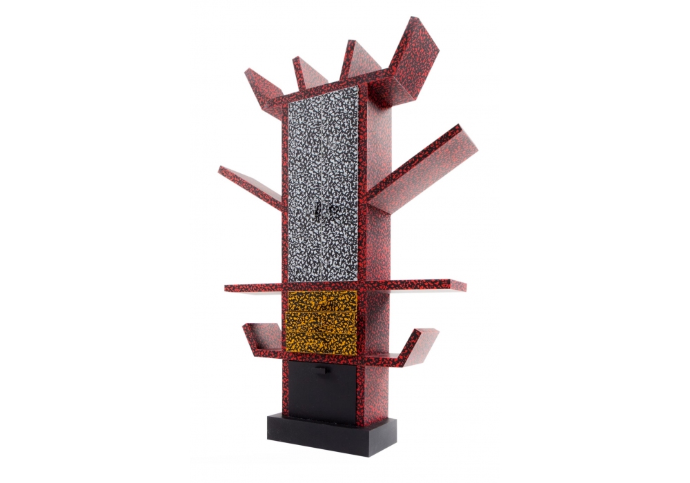 Casablanca diseñado por Ettore Sottsass para Memphis Milano es un mueble contenedor realizado en laminado plástico con estantes internos.