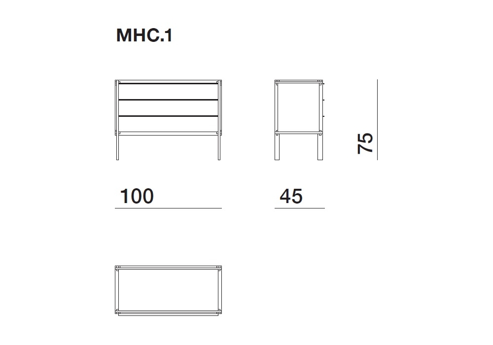 MHC.1 diseñada por Werner Blaser para Molteni&C es una cajonera realizada con paneles de estructura de MDF cubiertos con madera de emien teñida de miel o fresno teñido de negro.