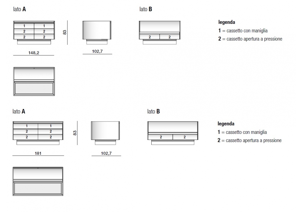 Baltimora diseñada por Matteo Nunziati para Molteni&C es una isla contenedor de doble cara, perfecta para usar en el centro de la habitación. Realizada con estructura en acabado eucalipto y sobre en cristal transparente o en Eco Skin. Perfil superior, tirador y cajones superiores en aluminio pintado. Disponible en diferentes acabados y dimensiones.