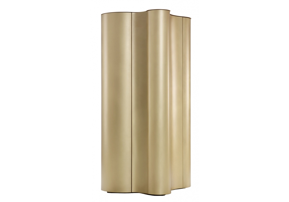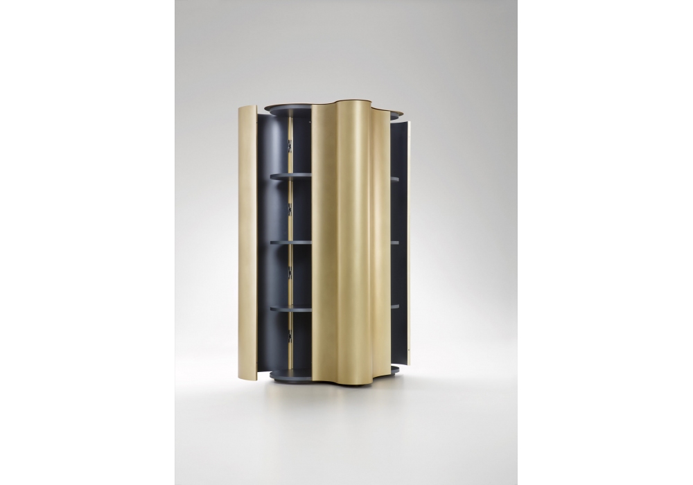 Ripple diseñado por Marco Pisati para DeCastelli es un contenedor realizado en metal con acabado en latón, en dos variantes. Interior con dos compartimentos con estantes y apertura push&pull de 180°.
