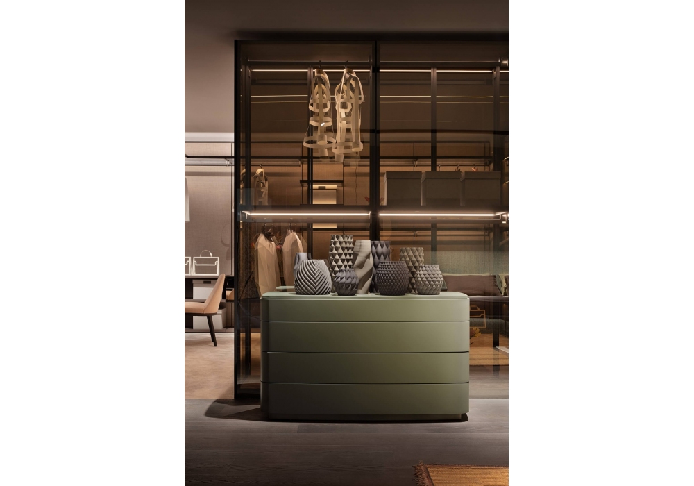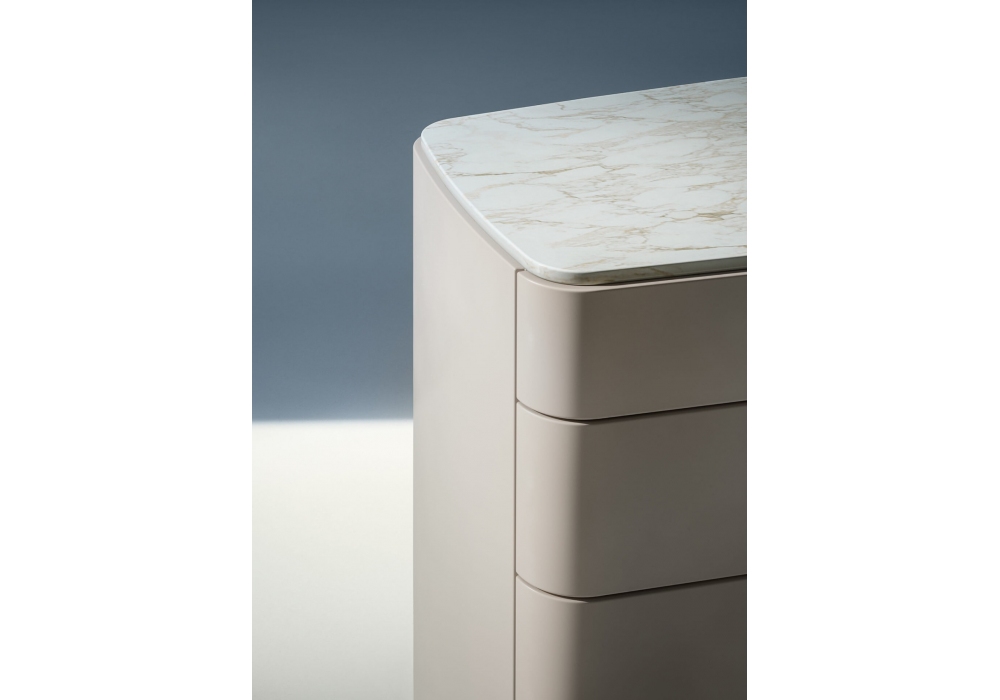 Lullaby diseñada por Ludovica + Roberto Palomba para Lema es una cómoda con esquinas redondeadas, la estructura y la parte superior están disponibles en diferentes acabados y materiales.