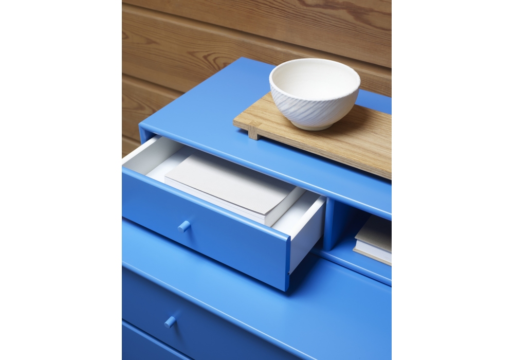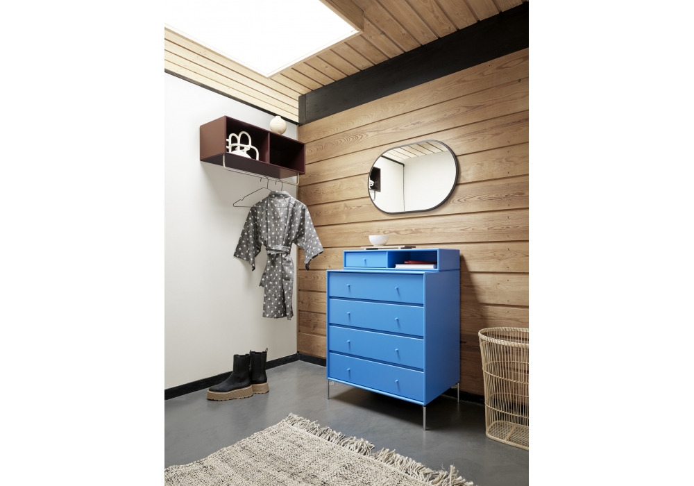 Keep diseñada por Peter J. Lassen para Montana es una cajonera ideal para mantener todo en orden en el dormitorio, el salón o el recibidor. Si finalmente desea una nueva apariencia, simplemente retire el módulo superior y utilícelo por separado. Disponible en diferentes colores lacados. Con pies o, bajo pedido, también disponible sobre carriles de suspensión o zócalo.