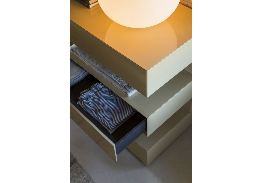 And diseñada por Fabio Bortolani y Stefano Maggi para Mogg es una cómoda realizada en MDF gofrado o lacado brillante. Disponible en diferentes acabados.