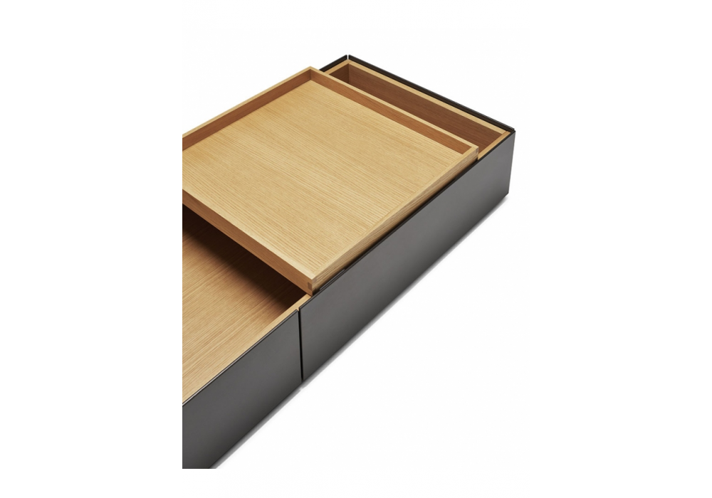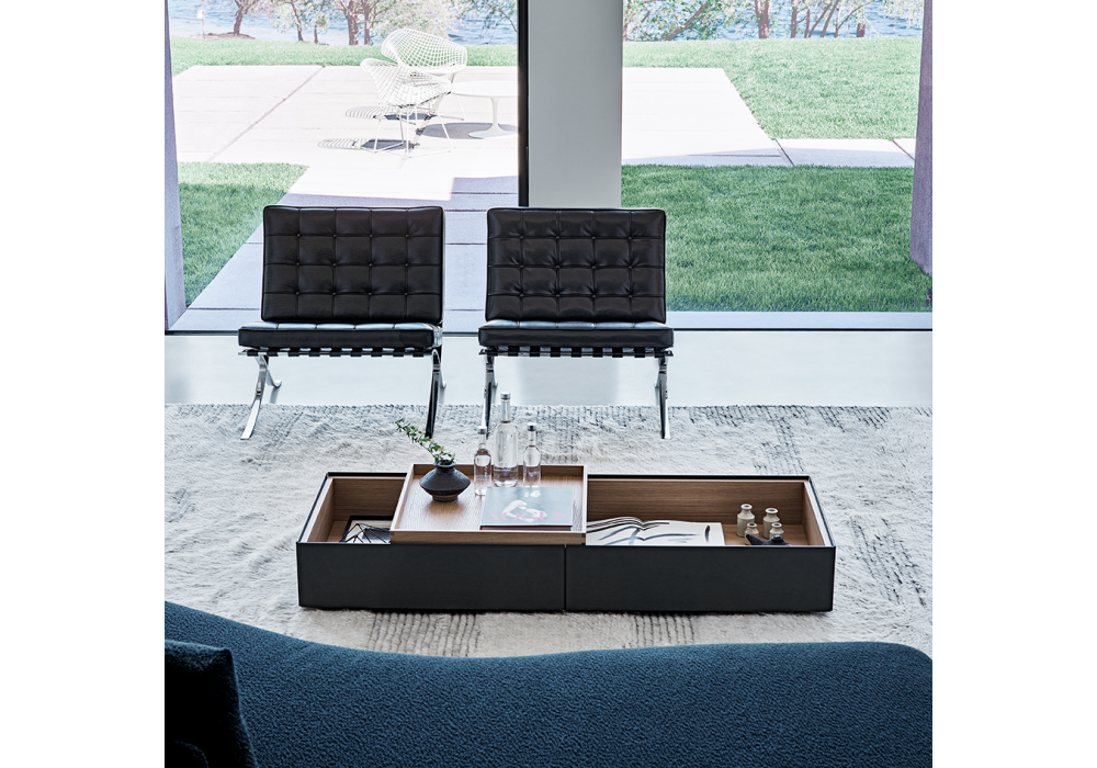 Matic diseñado por Piero Lissoni para Knoll es un mueble contenedor con bandeja. Partes de madera a la vista, cajones internos y bandeja en roble natural. Estructura externa y cajones frontales: en chapa de metal alveolar pintada en diferentes colores.