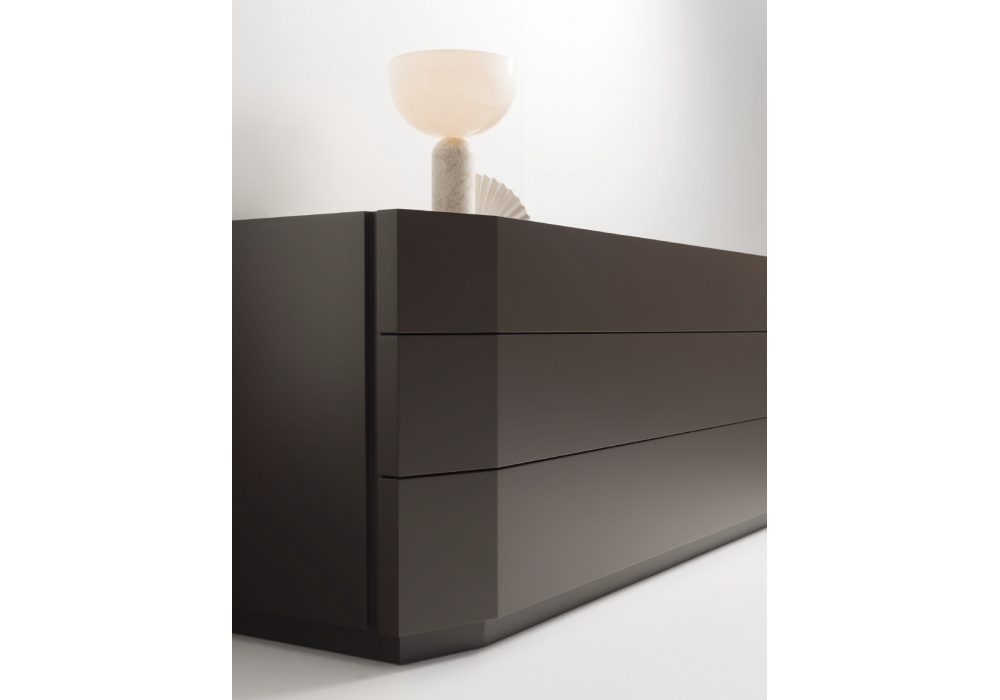 Delineo, diseñada por el equipo R&S Désirée, es una colección de contenedores disponible en varias dimensiones, pensada para la zona de noche; se distingue por un diseño esencial y sólido, capaz de integrarse con discreción en cualquier ambiente, con un volumen compacto realzado por superficies limpias y frentes con cajones, mientras que la unión entre frentes inclinados y laterales crea una práctica gola integrada que define la estética del producto y facilita su apertura.