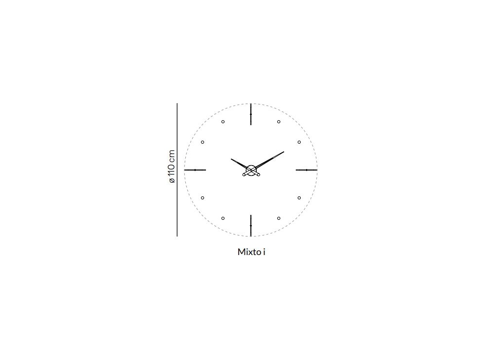 Mixto I diseñado y producido por Nomon es un reloj de pared con 12 señales horarias en latón cromado y agujas en acero inoxidable pintado en diferentes acabados.