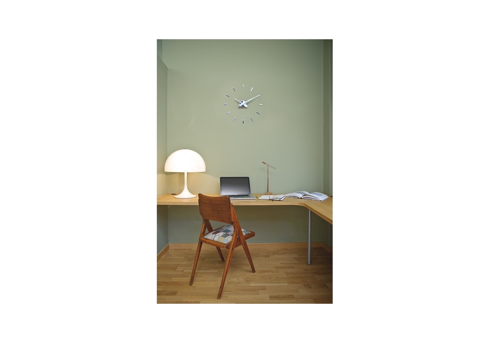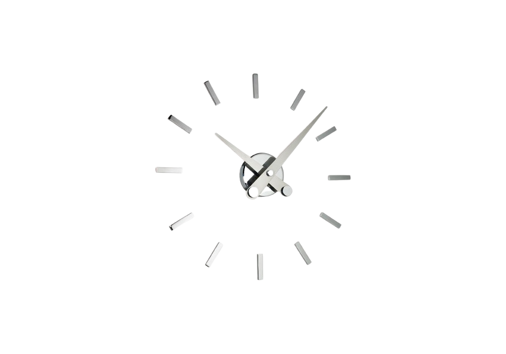 Puntos Suspensivos diseñado y producido por Nomon es un reloj de pared con 4 o 12 señales horarias en latón cromado y agujas en acero inoxidable pintado en diferentes acabados.