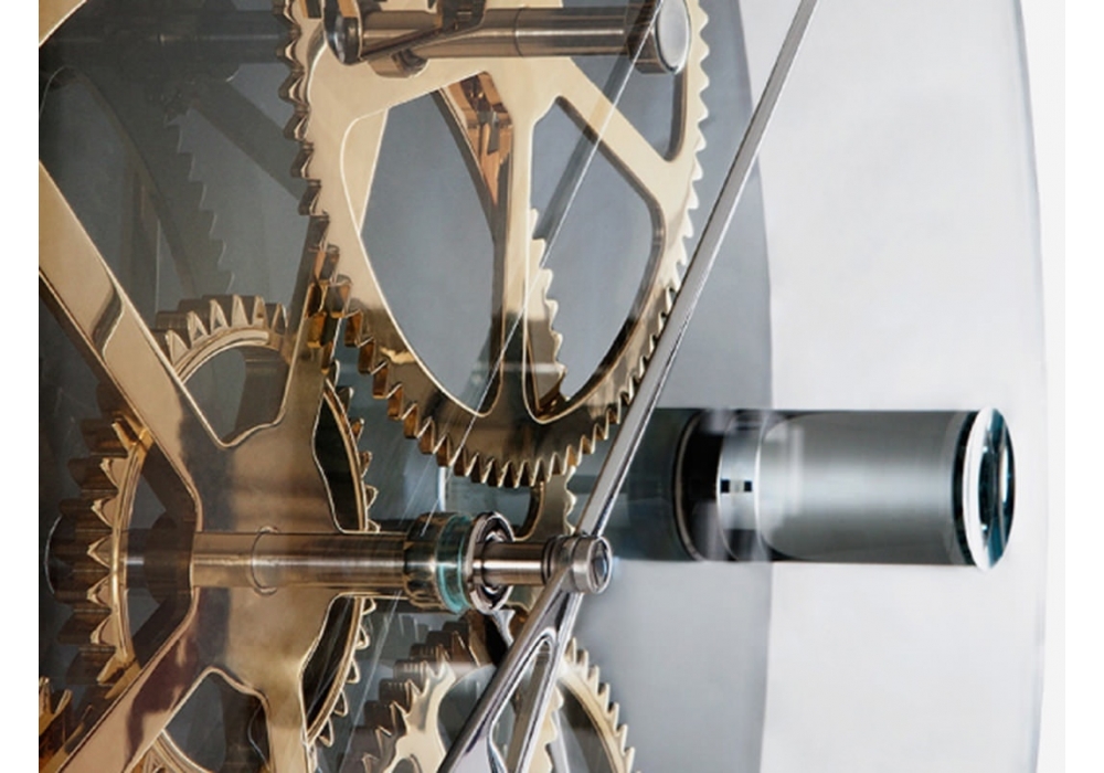 With Vivace designed by Teckell & Takto, time becomes emotion. The airy minimalism of the transparent crystal gives way to the elegant, smoked crystal structure. It's the perfect backdrop for the 24k-gold-plated mechanism, this clock's sparkling touch. A sheet of transparent crystal protects the timepiece's excellent mechanism.
