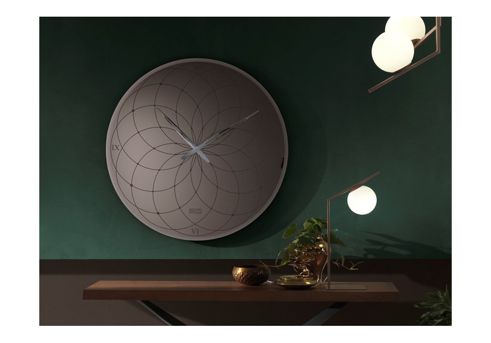 Roma diseñado por Riflessi es un reloj de pared realizado en espejo bronceado serigrafiado.