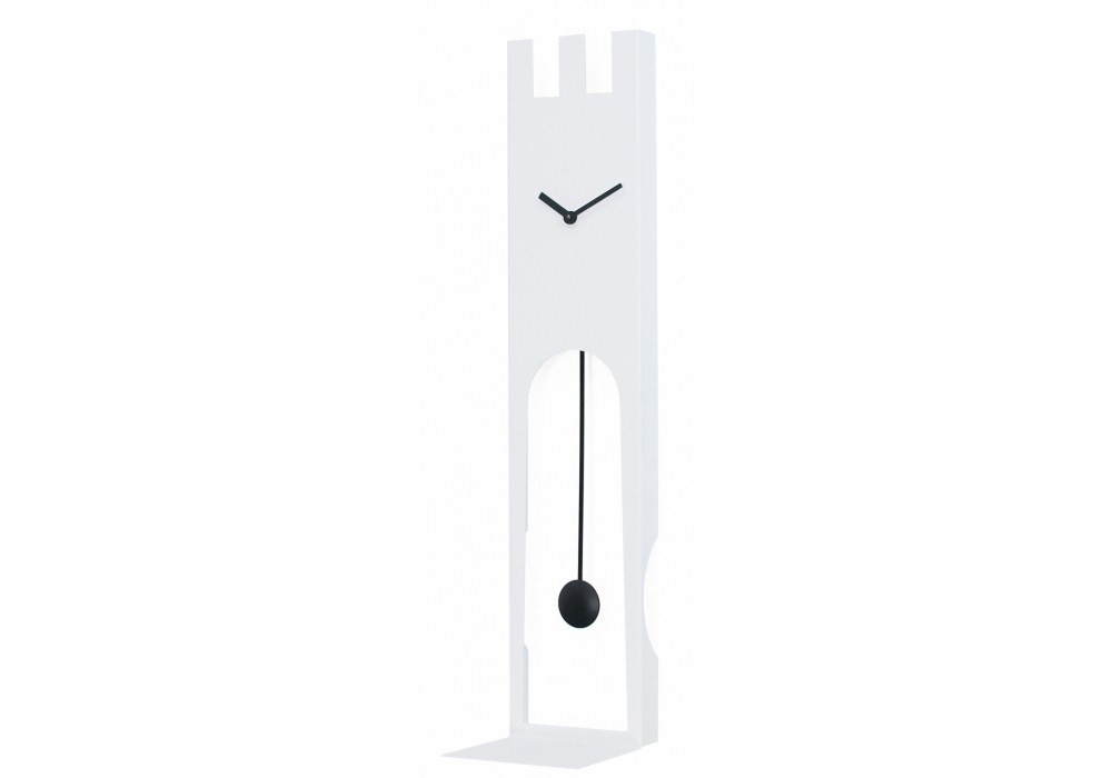 Don diseñado por Francesco Paolo Maria Giuliani para Progetti es un reloj de péndulo realizado en acero blanco o negro. En la parte inferior hay un estante de apoyo. Coloreado con pinturas no tóxicas, utiliza un movimiento a batería de fabricación alemana. Disponible en diferentes modelos.