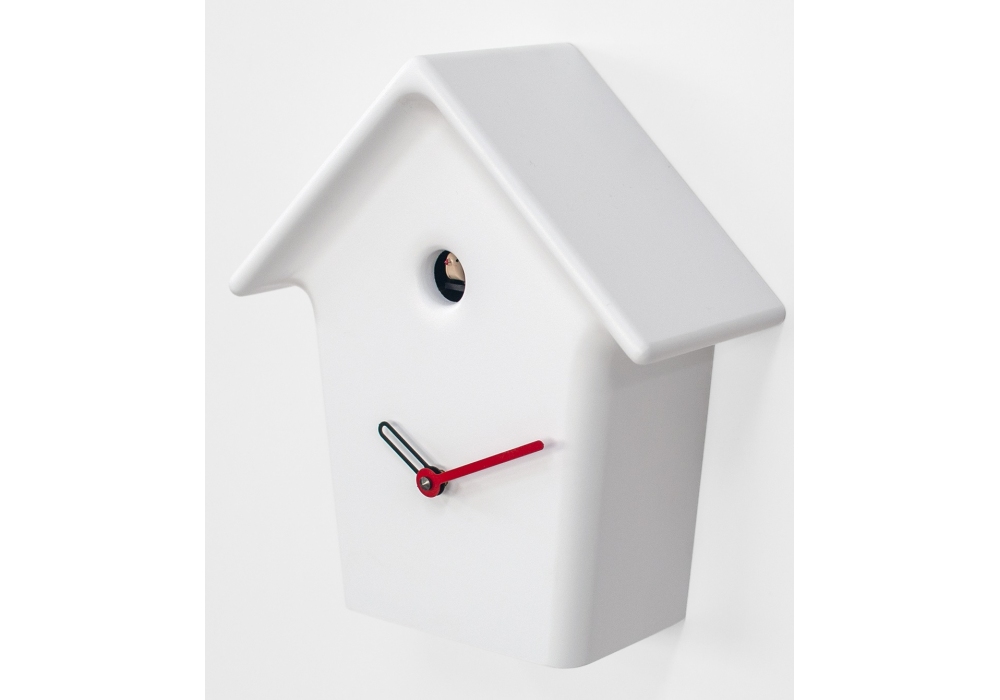 Mochi Mochi diseñado por Krit Jiratkaruen para Progetti es un reloj cucú de pared realizado en madera pintada o nogal macizo y acabado a mano. El movimiento de cuco, de diseño alemán, es de alta calidad y funciona con dos pilas, tiene un sensor fotosensible que no lo hace cantar cuando está oscuro. Un pulsador te permite ajustar la intensidad del sonido o apagarlo por completo. Disponible en diferentes acabados.