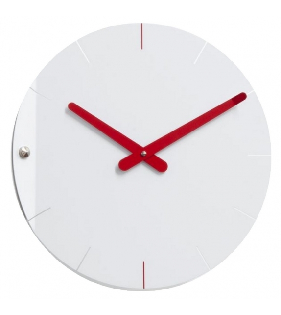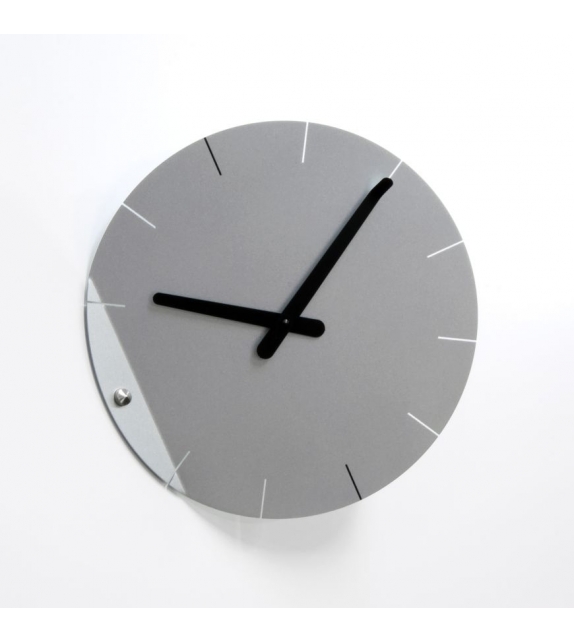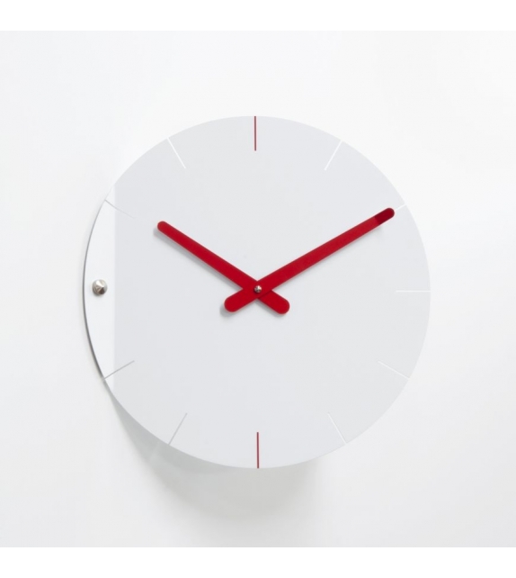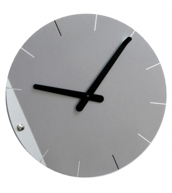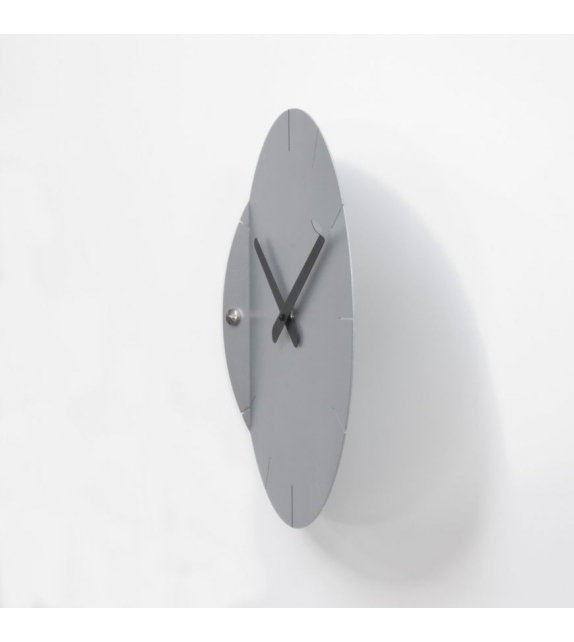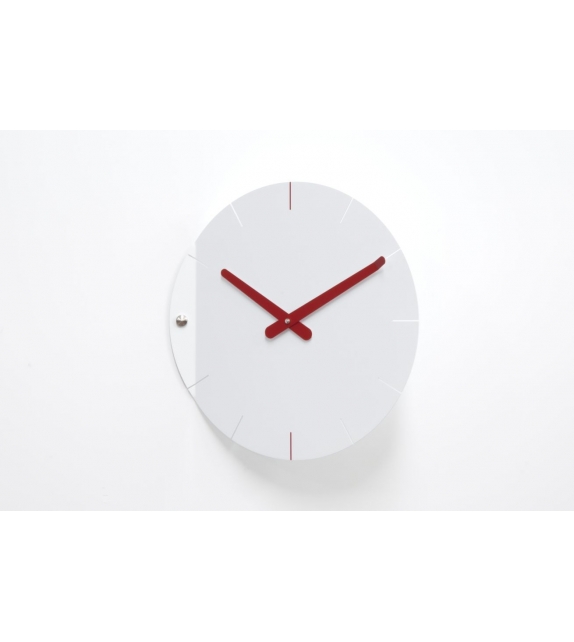 Sheet diseñado por Pino Montalti para Progetti es un reloj de pared en acero pintado. Movimiento de cuarzo a pilas.