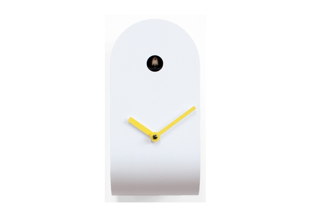 Cucupola diseñado por Mattia Cimadoro para Progetti es un reloj de cuco realizado en madera barnizada y metal. Movimiento de cuarzo a pilas. Un sensor sensible a la luz detiene automáticamente el timbre en ausencia de luz.