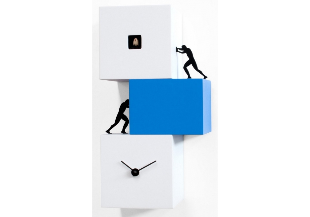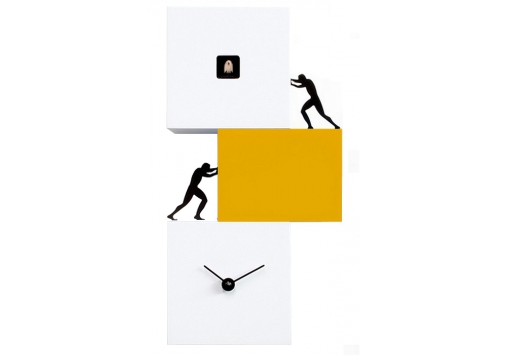 Strong Cucù 2 diseñado por Antonio Farina para Progetti es un reloj de cuco de pared o de mesa realizado en madera y acero. Movimiento de cuarzo a pilas. Disponible en diferentes acabados.